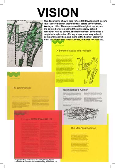 The following are a series of historical panels provided by Patty Hamilton that outline Wesleyan Hills from its inception, to construction, and beyond.